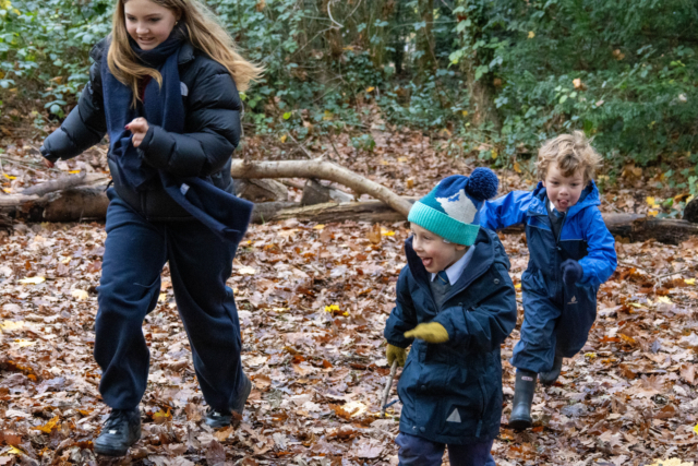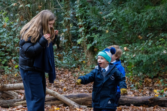 This partnership extends beyond the site itself. Each Thursday, a dedicated Sevenoaks service group visits the Forest School to support activities and work alongside the younger pupils. The older students help to guide nature based learning, encourage curiosity and confidence outdoors, and model positive leadership and teamwork.